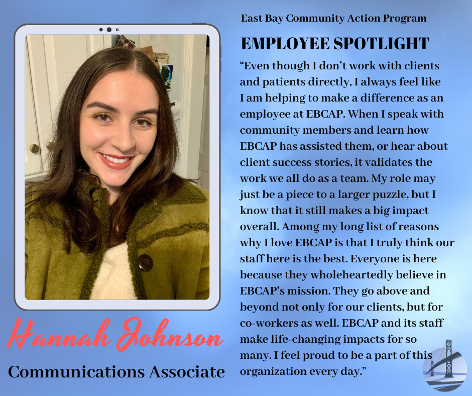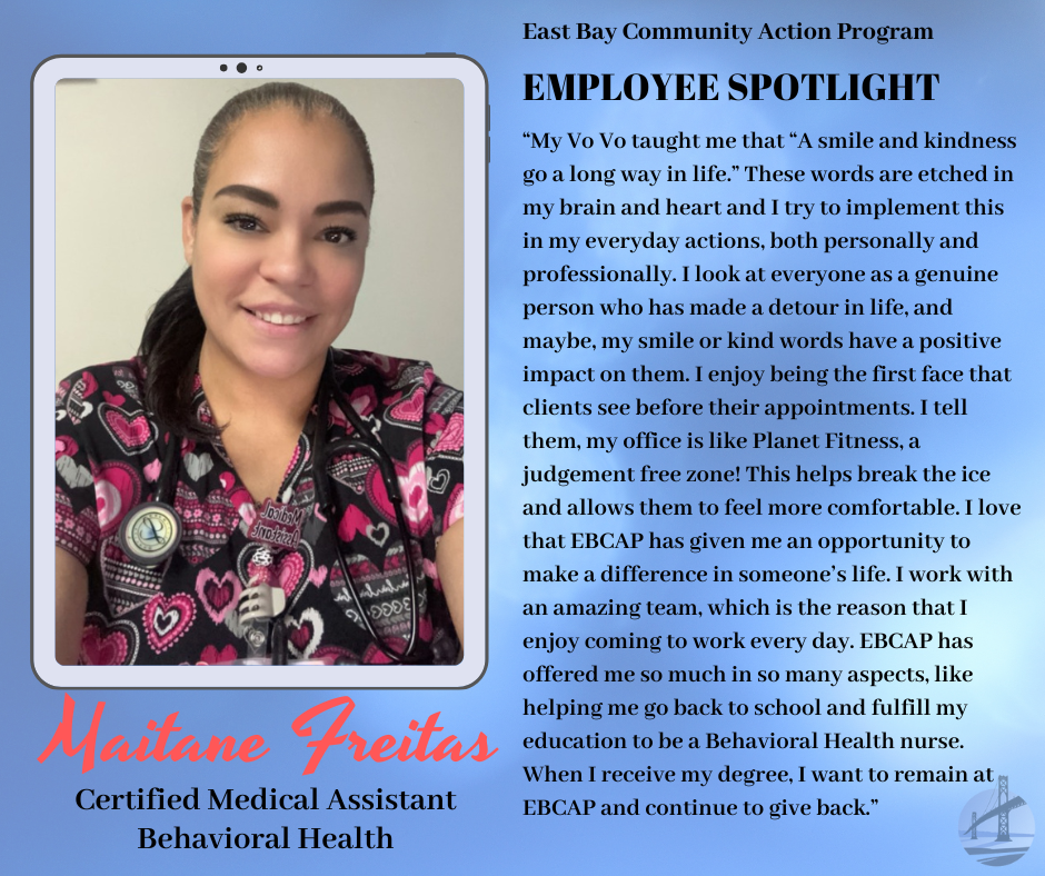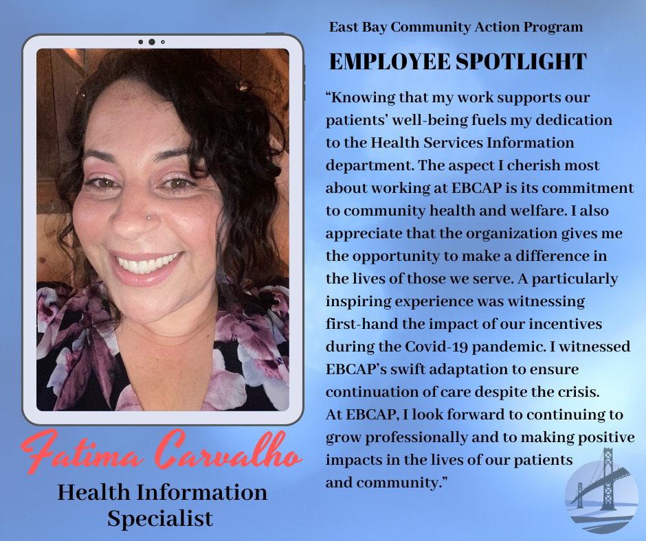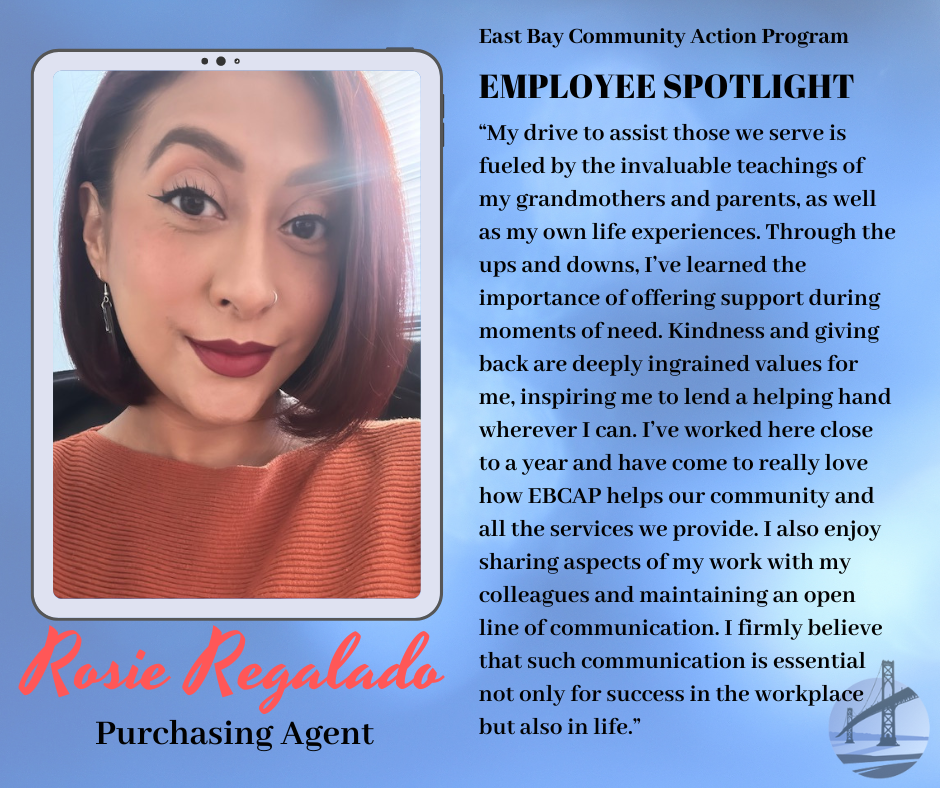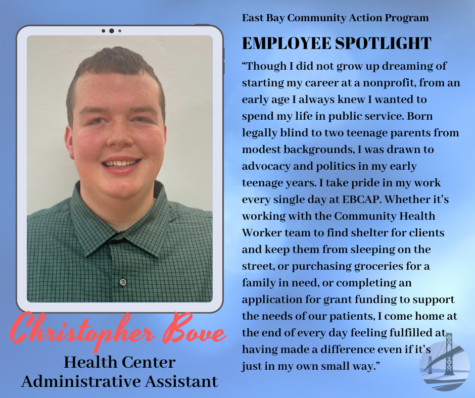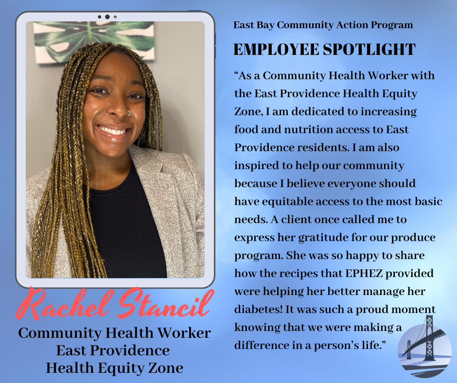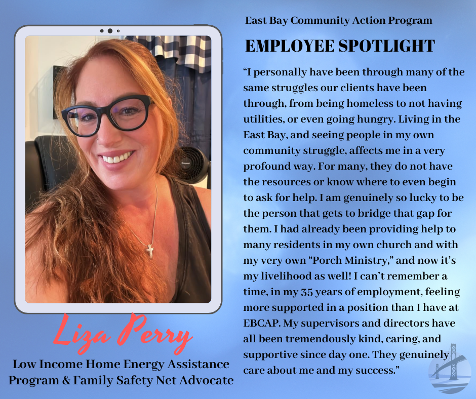 We at East Bay Community Action Program are proud to recognize the achievements and contributions of our employees for all their hard work and dedication. Inspiring, motivated, committed best describe EBCAP employees, who do their best to help serve the East Bay community and provide vital health and human services, keeping people safe, secure, and healthy.