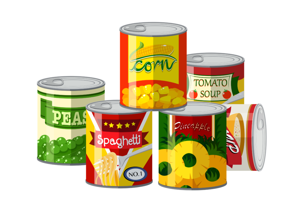 | Pasta sauce | Canned soup | Canned green beans |